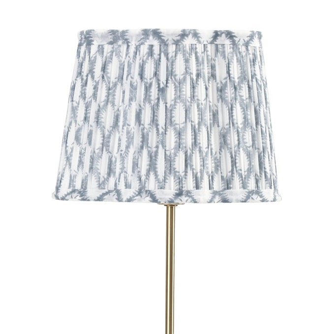 Lampskärmen Cypress är mönstrad, plisserad tygskärm. Du hittar lampskärmar i blocktryckta tyger från Chamois i olika storlekar här hos Longcoast Living.