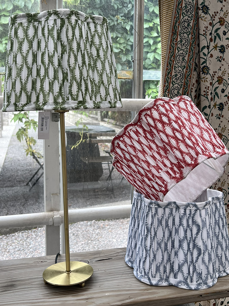 Lampskärm i det blocktryckta tyget "Cypress" från Chamois.